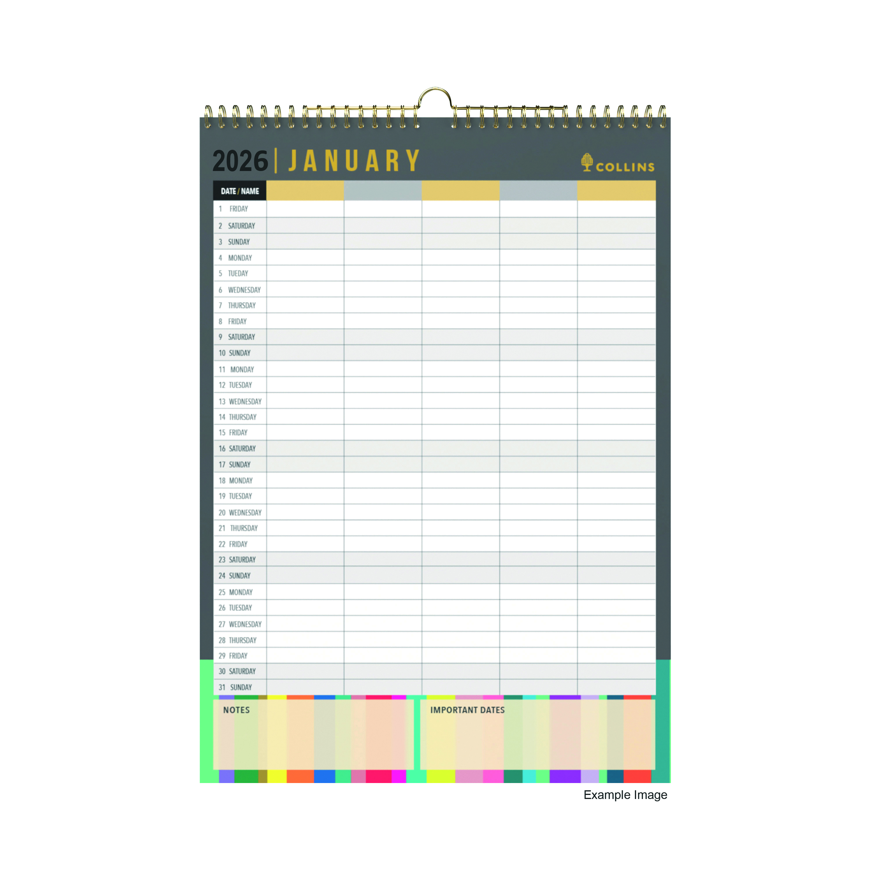 - Includes a notes and Important Dates area to write on for additional planning